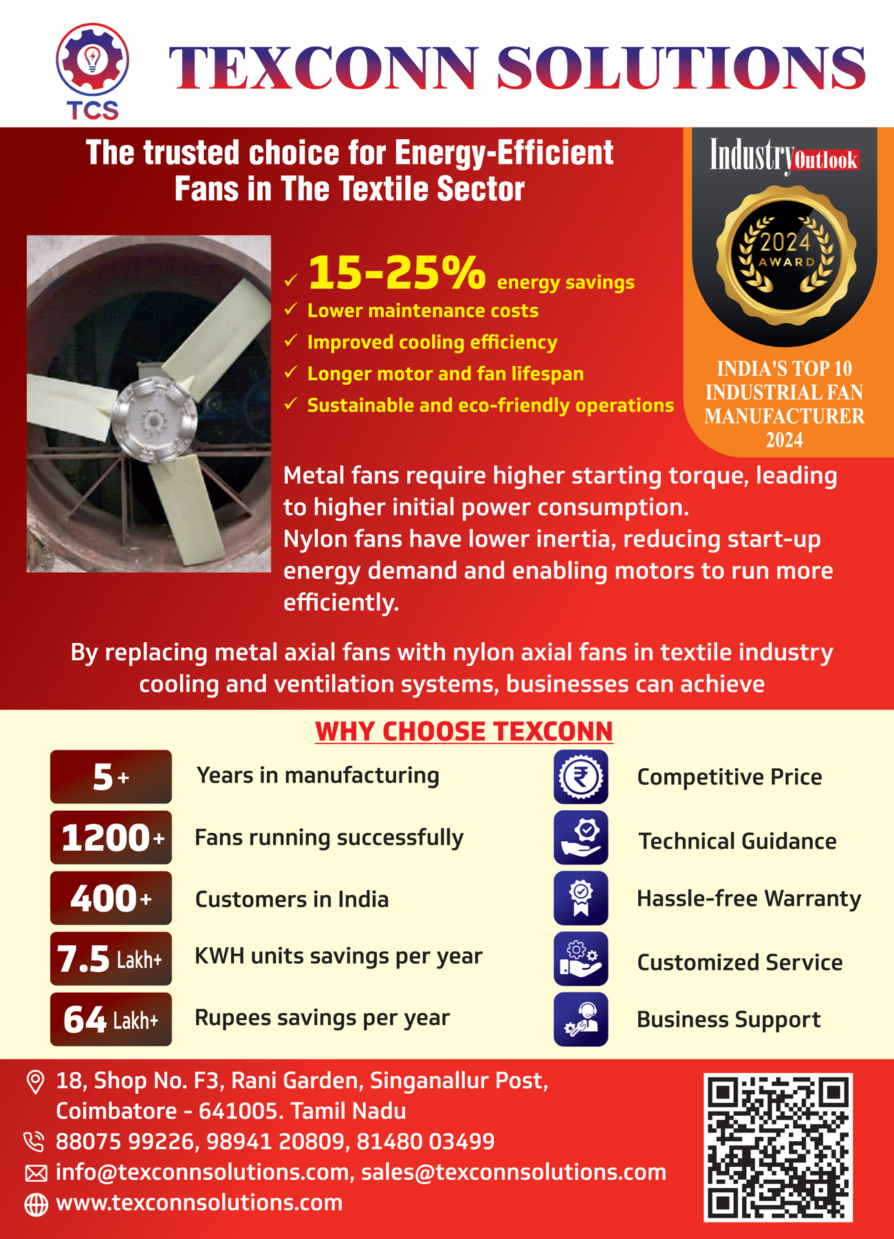 Our advanced fans and energy-efficient systems consistently reduce power consumption and operational costs for textile industries.